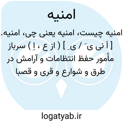 (اسم ) سرباز مائمور حفظ انتظام و آرامش در طرق و شوارع و قری و قصبات ژاندارم امنیه (اسم ) آرزو خواهش امید. جمع: امانی.