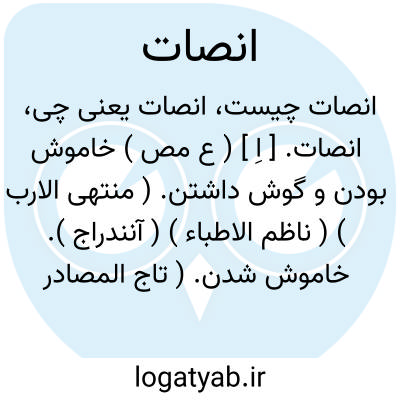 انصات. [ اِ ] ( ع مص ) خاموش بودن و گوش داشتن. ( منتهی الارب ) ( ناظم الاطباء ) ( آنندراج ). خاموش شدن. ( تاج المصادر بیهقی ) ( مصادر زوزنی ). خاموش بودن. ( ترجمان القرآن جرجانی ). ساکت بودن و گوش دادن. ( از اقرب الموارد ). || خاموش کردن. ( منتهی الارب ) ( از ناظم الاطباء ) ( آنندراج ) ( تاج المصادر بیهقی ). اسکات. ساکت کردن. ( از اقرب الموارد ). لازم و متعدی است. ( از منتهی الارب ). || ببازی میل کردن. ( منتهی الارب ) ( ناظم الاطباء ) ( آنندراج ).