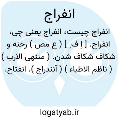 انفراج. [ اِ ف ِ ] ( ع مص ) رخنه و شکاف شکاف شدن. ( منتهی الارب ) ( ناظم الاطباء ) ( آنندراج ). انفتاح. ( از اقرب الموارد ). || اندوه واشدن. ( تاج المصادر بیهقی ) ( مصادر زوزنی ): انفراج غم؛ انکشاف آن. ( از اقرب الموارد ). انفراج کرب، ابلنقعاع کرب؛ وارفتن اندوه. ( یادداشت مؤلف ). || ( اِمص ) تفرج خاطر. || ( اِ ) چاک و شکاف و ترک. || فاصله. ( ناظم الاطباء ).