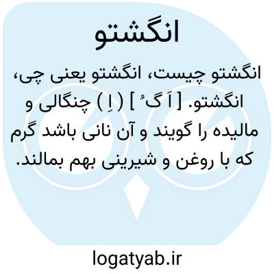 انگشتو. [ اَ گ ِ ] ( اِ ) نانی که بر روی زغال پزند. نانی که بعد از پختن نشان انگشت بر آن باشد و آن را پنجه کش نیز گویند. ( ازانجمن آرا ) ( از آنندراج ). و رجوع به انگشتوا شود.
