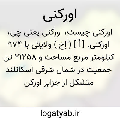 اورکنی. [ اُ ] ( اِخ ) ولایتی با 974 کیلومتر مربع مساحت و 21258 تن جمعیت در شمال شرقی اسکاتلند متشکل از جزایر اورکنی یا اورکنیز. مجمعالجزایری است بطول 80 کیلومتر مربع و مرکب از 90 جزیره که کمتر از ثلث آنها مسکون است. مرکز ولایت شهر کرکوال در بزرگترین جزایر موسوم به پمونا واقع است. در 865-1468م. متعلق به نروژ بود. ( دایرةالمعارف فارسی ).