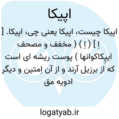 اپیکا. [ اِ ] ( اِ ) ( مخفف و مصحف ایپِکاکوانها ) پوست ریشه ای است که از برزیل آرند و از آن اِمتین و دیگر ادویه مقیی کنند.