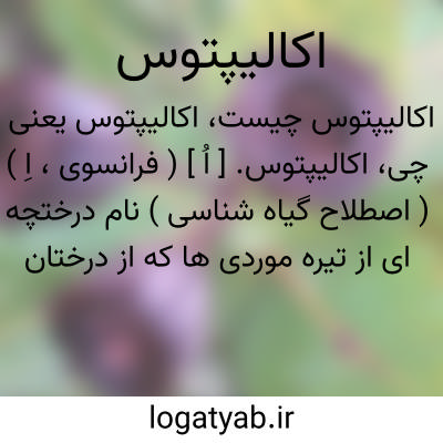 اکالیپتوس. [ اُ ] ( فرانسوی، اِ ) ( اصطلاح گیاه شناسی ) نام درختچه ای از تیره موردی ها که از درختان مناطق گرمسیر استرالیایی و دارای دم برگهای معطر است. ( از گیاه شناسی گل گلاب ص 262 ). انواع مختلفی از زینتی و جز آن دارد. ( یادداشت مؤلف ). درختی از تیره موردیها که در استرالیا جنگلهای انبوهی را تشکیل می دهد و ارتفاع آن به 145 گز و محیط تنه آن به 25 گز می رسد. ( از فرهنگ فارسی معین ).