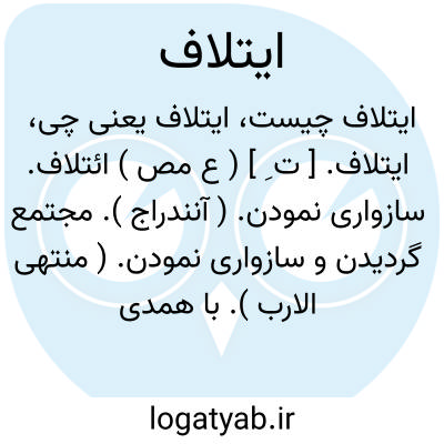 (اِ یْ تِ ) [ ع. ائتلاف ] ۱ - (مص م. ) با هم شدن، به هم پیوستن. ۲ - الفت یافتن، مؤانست یافتن. ۳ - (اِمص. ) الفت، مؤانست، پیوستگی.