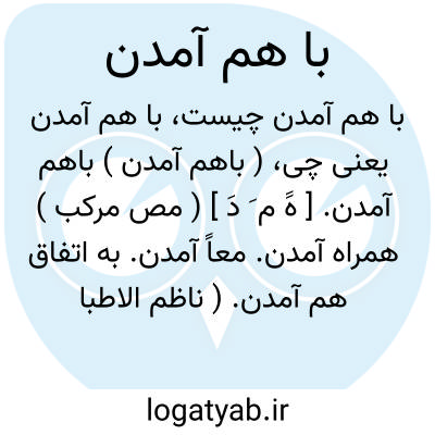 ( باهم آمدن ) باهم آمدن. [ هََ م َ دَ ] ( مص مرکب ) همراه آمدن. معاً آمدن. به اتفاق هم آمدن. ( ناظم الاطباء ). انضمام. تقلص. احلاب. ( تاج المصادر بیهقی ). در صحبت یکدیگر فرارسیدن. || متحد شدن. به یک جا جمع شدن: