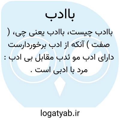 ( صفت ) آنکه از ادب برخوردارست دارای ادب مو ئدب مقابل بی ادب: مرد با ادبی است.