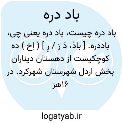 باددره. [ بادْ، دَ رَ / رِ ] ( اِخ ) ده کوچکیست از دهستان دیناران بخش اردل شهرستان شهرکرد. در 16هزارگزی باختر اردل واقع است و دارای 19 تن سکنه میباشد. ( از فرهنگ جغرافیائی ایران ج 10 ).