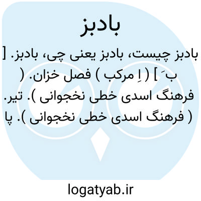 بادبز. [ ب َ ] ( اِ مرکب ) فصل خزان. ( فرهنگ اسدی خطی نخجوانی ). تیر. ( فرهنگ اسدی خطی نخجوانی ). پائیز. خریف. رجوع به بادبیز شود.
