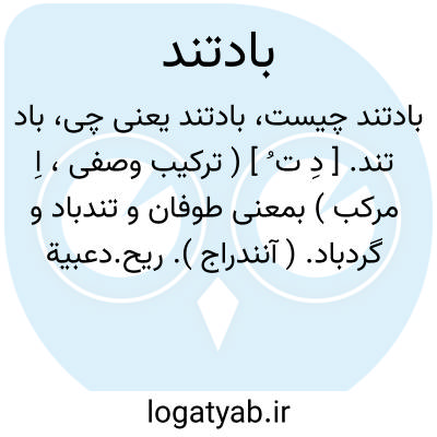 باد تند. [ دِ ت ُ ] ( ترکیب وصفی، اِ مرکب ) بمعنی طوفان و تندباد و گردباد. ( آنندراج ). ریح.دعبیة. زِهْلِق. عَصوف. ریح لِباع. ( منتهی الارب ).