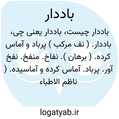 باددار. ( نف مرکب ) پرباد و آماس کرده. ( برهان ). نفاخ. منفخ. نفخ آور. پرباد. آماس کرده و آماسیده. ( ناظم الاطباء ).