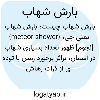 {meteor shower} [نجوم] ظهور تعداد بسیاری شهاب در آسمان، براثر برخورد زمین با توده ای از ذرات رهاشده از یک دنباله دار