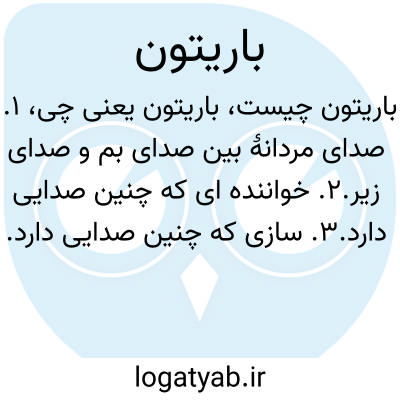 صدای مردانه با زیراییِ بین باس و تنور، و گسترۀ تقریبی سل ۲ تا فا۴. این کلمه وقتی پسوند نام یک ساز باشد، مانند ساکسوفون باریتون، به این مطلب اشاره دارد که گسترۀ آوایی صدای آن ساز تقریباً مشابه گسترۀ آوایی باریتون است. دیتریش فیشرـ دیسکاوو هرمان پِرِیاز باریتون های معروف آلمانی اند. «باریتون » نام یک ساز برنجی دریچه دار از خانوادۀ ساکس هورناست، که زیرایی مشابه با اِئوفُنیوم دارد.