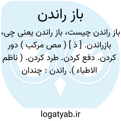 بازراندن. [ دَ ] ( مص مرکب ) دور کردن. دفع کردن. طرد کردن. ( ناظم الاطباء ). راندن: چندانکه او بمرو رسید کدخدای اورا بازراندند و وزارت بعبداﷲبن عزیز تفویض کردند. ( ترجمه تاریخ یمینی ص 56 ). || یاد کردن. بخاطر آوردن. || بیان کردن. ( ناظم الاطباء ).گزارش دادن. گفتن. بازگفتن. صحبت کردن: