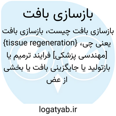 {tissue regeneration} [مهندسی پزشکی] فرایند ترمیم یا بازتولید یا جایگزینی بافت یا بخشی از عضوهای ازدست رفته یا آسیب دیده ازطریق نوسازی طبیعی