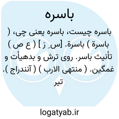 ( باسرة ) باسرة. [س ِ رَ ] ( ع ص ) تأنیث باسر. روی ترش و بدهیأت و غمگین. ( منتهی الارب ) ( آنندراج ). تیره. کریه اللقاء شدیدالعبوس: و وجوه یومئذِ باسرة؛ رویهاست درآن روز تیره. ( قرآن 24/75 ). و رجوع به باسر شود.
