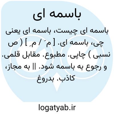 باسمه ای. [ م َ / م ِ ] ( ص نسبی ) چاپی. مطبوع. مقابل قلمی. و رجوع به باسمه شود. || به مجاز، کاذب. بدروغ. بدل. مجعول. ( یادداشت مؤلف ).