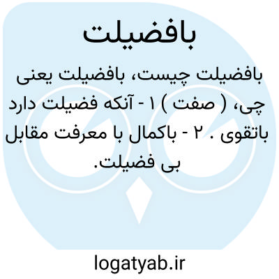 ( صفت ) ۱ - آنکه فضیلت دارد باتقوی. ۲ - باکمال با معرفت مقابل بی فضیلت.