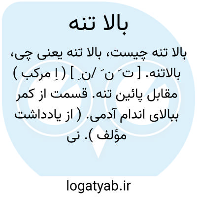 بالاتنه. [ ت َ ن َ /ن ِ ] ( اِ مرکب ) مقابل پائین تنه. قسمت از کمر ببالای اندام آدمی. ( از یادداشت مؤلف ). نیمه بالایین بدن آدمی. || قسمت بالایین جامه که از کمر ببالا را پوشد. ( یادداشت مؤلف ). آن جزء از جامه که بالاتنه را پوشد در جامه های دراز. مقابل پائین تنه و دامن.