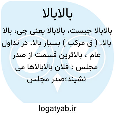 بالا بالا. ( ق مرکب ) بسیار بالا. در تداول عام، بالاترین قسمت از صدر مجلس: فلان بالابالاها می نشیند؛صدر مجلس می گزیند. || طبقات برتر. خواص. مقابل زیردستان و فرودستان. || بی اطلاع و بی توسط دیگری. گویند: فلان بالابالا کار خود را انجام داد، یعنی بدون اطلاع و کمک کسی که با او در آن کار دخیل بود. ( فرهنگ نظام ). اما گفته فرهنگ نظام با معنی دوم متناسب تر است. || محیلانه. بطور خدعه. ( ناظم الاطباء ). اما این معنی جای دیگر دیده نشد.، بالابالا. ( اِخ ) نام آبادیی در کنار رودخانه شاهرود بین لوشان و منجیل بر سر راه قزوین به رشت.