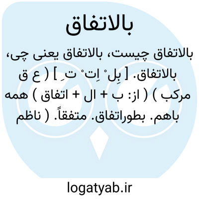 بالاتفاق. [ بِل ْ اِت ْ ت ِ ] ( ع ق مرکب ) ( از: ب + ال + اتفاق ) همه باهم. بطوراتفاق. متفقاً. ( ناظم الاطباء ). همگروه. دسته جمع.