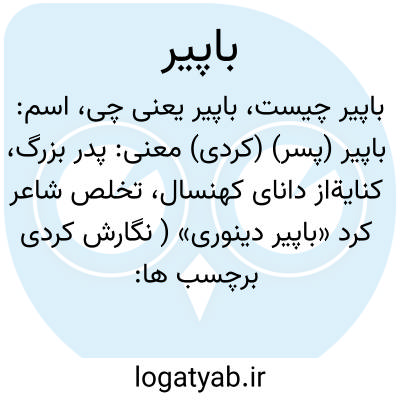 معنی: پدر بزرگ، کنایةاز دانای کهنسال، تخلص شاعر کرد «باپیر دینوری» ( نگارش کردی