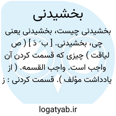 بخشیدنی. [ ب َ دَ ] ( ص لیاقت ) چیزی که قسمت کردن آن واجب است. واجب القسمه. ( از یادداشت مؤلف ). قسمت کردنی: