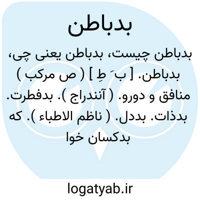 بدباطن. [ ب َ طِ ] ( ص مرکب ) منافق و دورو. ( آنندراج ). بدفطرت. بدذات. بددل. ( ناظم الاطباء ). که بدکسان خواهد: عَوِر. خوش ظاهر بدباطن. ( یادداشت مؤلف ). طناقة؛ بدباطن گردیدن. ( منتهی الارب ):