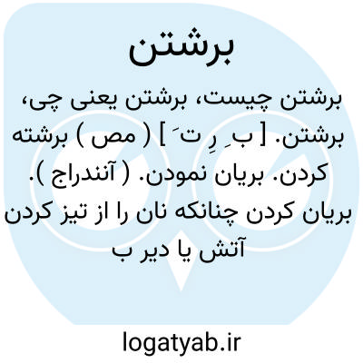 کبابی را که ببرشتی مسوزان.فخرالدین اسعد ( ویس و رامین ).و چنانکه گندم و شاهدانه و امثال آن را بر تابه به آتش نهادن بی آب. بو دادن. ( یادداشت مؤلف ). تاب دادن: