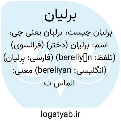اسم: برلیان (دختر) (فرانسوی) (تلفظ: bereliyān) (فارسی: بِرليان) (انگلیسی: bereliyan)