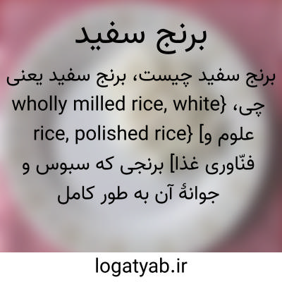 {wholly milled rice, white rice, polished rice} [علوم و فنّاوری غذا] برنجی که سبوس و جوانۀ آن به طور کامل گرفته شده باشد