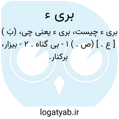 [ویکی الکتاب] معنی بَرِیءٌ: بیزار- جدا از چیزی (درجمله "یَرْمِ بِهِ بَرِیئاً "یعنی گناهی را به کسی که نسبتی با آن نداشته نسبت بدهد)