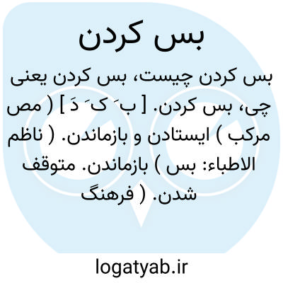 بس کردن. [ ب َ ک َ دَ ] ( مص مرکب ) ایستادن و بازماندن. ( ناظم الاطباء: بس ) بازماندن. متوقف شدن. ( فرهنگ فارسی معین ). بازایستادن. || کم کردن. ( آنندراج ). || فروگذاشتن. ترک گفتن. رها کردن واگذاشتن و ترک کردن. ( ناظم الاطباء ). رها ساختن. || قطع کردن. || تمام کردن. || صرف نظر کردن: