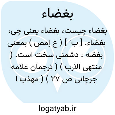 بغضاء. [ ب َ ] ( ع اِمص ) بمعنی بغضه، دشمنی سخت است. ( منتهی الارب ) ( ترجمان علامه جرجانی ص 27 ) ( مهذب الاسماء ) ( ناظم الاطباء ). عداوت سخت. ( غیاث ) ( آنندراج ). عداوت و دشمنی سخت. ( فرهنگ نظام ). دشمنی. بغض. خصومت. دشمنانگی. کین. کینه.