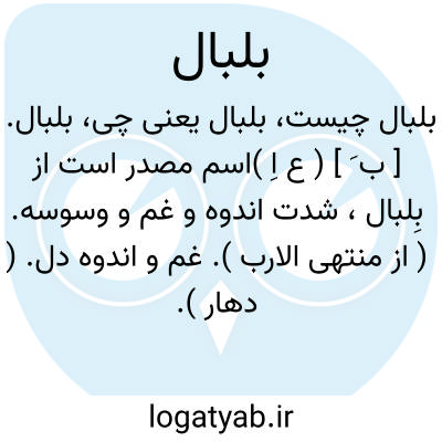 بلبال. [ ب َ ] ( ع اِ )اسم مصدر است از بِلبال، شدت اندوه و غم و وسوسه. ( از منتهی الارب ). غم و اندوه دل. ( دهار ). اندوه و غم شدید. ( غیاث ). ج، بَلابِل. ( منتهی الارب ):