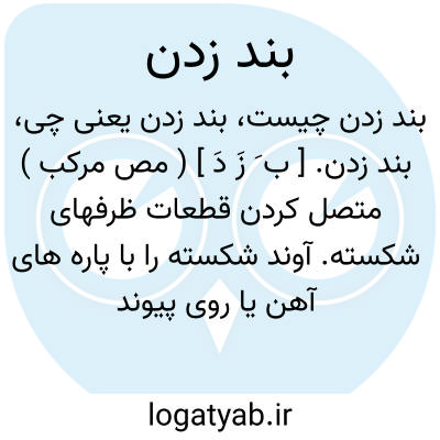 بند زدن. [ ب َ زَ دَ ] ( مص مرکب ) متصل کردن قطعات ظرفهای شکسته. آوند شکسته را با پاره های آهن یا روی پیوند کردن. وصل کردن تکه های جداشده کاسه و بشقاب. ( فرهنگ فارسی معین ). دو پاره شکسته سفال یا ظرف چوبین یا چینی را با آهن باریک بیکدیگر پیوستن. لگام و فش کردن ظرف چوبین یا سفالین شکسته. ( یادداشت بخط مؤلف ). بَش زدن ( در تداول اهالی خراسان ). || بند نهادن. ( آنندراج ):