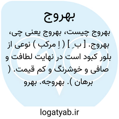 بهروج. [ ب ِ ] ( اِ مرکب ) نوعی از بلور کبود است در نهایت لطافت و صافی و خوشرنگ و کم قیمت. ( برهان ). بهروجه. بهروز. بهروزه. نوعی از بلور کبود است که کم بها و برنگ پیروزه است. ( آنندراج ) ( از انجمن آرای ناصری ) ( از ناظم الاطباء ) ( از الجماهر بیرونی ص 173 ). بهروز. پهلوی. «وهروچ ». نوعی بلور کبود شفاف و کم قیمت. ( فرهنگ فارسی معین ). بهروجه. بهروز. بهروزه. رجوع به همین کلمات شود. || کندر هندی. ( برهان ) ( ناظم الاطباء ) ( از آنندراج ) ( از انجمن آرا ) ( فرهنگ فارسی معین ).