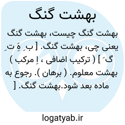 بهشت گنگ. [ ب ِ هَِ ت ِ گ َ ] ( ترکیب اضافی، اِ مرکب ) بهشت معلوم. ( برهان ). رجوع به ماده بعد شود.