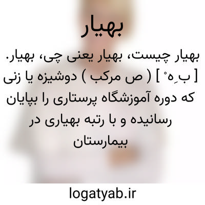 بهیار. [ ب ِه ْ ] ( ص مرکب ) دوشیزه یا زنی که دوره آموزشگاه پرستاری را بپایان رسانیده و با رتبه بهیاری در بیمارستانها بسمت پرستار مشغول کار است. ( فرهنگ فارسی معین ).