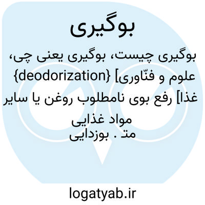 {deodorization} [علوم و فنّاوری غذا] رفع بوی نامطلوب روغن یا سایر مواد غذایی متـ. بوزدایی