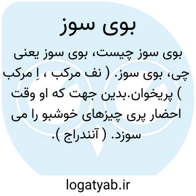 بوی سوز. ( نف مرکب، اِ مرکب ) پریخوان.بدین جهت که او وقت احضار پری چیزهای خوشبو را می سوزد. ( آنندراج ). || مجمر و آتشدان. ( ناظم الاطباء ) ( آنندراج ). عودسوز. مجمر. عطرسوز. مجمره. مدخته. مقطر. مقطره. ( یادداشت بخط مؤلف ):