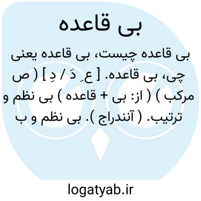 بی قاعده. [ ع ِ دَ / دِ ] ( ص مرکب ) ( از: بی + قاعده ) بی نظم و ترتیب. ( آنندراج ). بی نظم و بدون ترتیب. || بدون اساس. ( ناظم الاطباء ). || ناصحیح و نادرست. ( ناظم الاطباء ). برخلاف رسم. و رجوع به قاعده شود.
