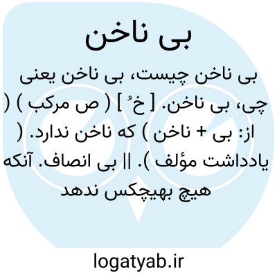 بی ناخن. [ خ ُ ] ( ص مرکب ) ( از: بی + ناخن ) که ناخن ندارد. ( یادداشت مؤلف ). || بی انصاف. آنکه هیچ بهیچکس ندهد. سخت ظالم نسبت بمال زیردستان. آنکه همه خیرها خود را خواهد و بهیچکس اندکی نیز دادن نخواهد. سخت بی خیر. سخت نفع خویش خواهنده که بکسی دیگر چیزی از نفع و خیر رسیدن نگذارد. که هیچ نفعی از وی بدیگران نرسد. که همه فائدتها برای خود خواهد. که نگذارد اندک نفعی به زیردست یا معامل رسد. که هیچ برای دیگران باقی نماند و همه را خود برد. که هیچ نفعی برای کسی بجا نگذارد. ( یادداشت بخط مؤلف ). ناخن خشک.