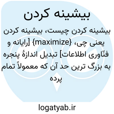 {maximize} [رایانه و فنّاوری اطلاعات] تبدیل اندازۀ پنجره به بزرگ ترین حد آن که معمولاً تمام پرده را در بر می گیرد