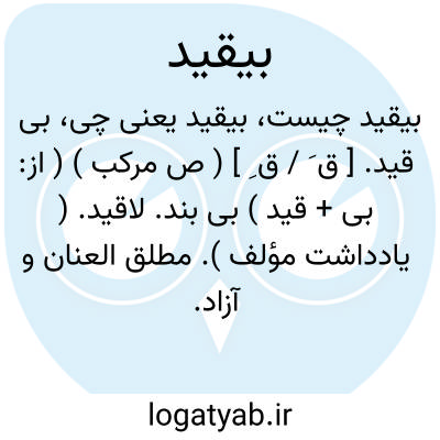بی قید. [ ق َ / ق ِ ] ( ص مرکب ) ( از: بی + قید ) بی بند. لاقید. ( یادداشت مؤلف ). مطلق العنان و آزاد. ( آنندراج ). || لاابالی در کارها. || بی ضبط و ربط. || بی ترتیب. ( ناظم الاطباء ). رجوع به قید شود.