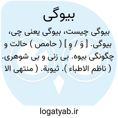 بیوگی. [ وَ / وِ ] ( حامص ) حالت و چگونگی بیوه. بی زنی و بی شوهری. ( ناظم الاطباء ). ثیوبة. ( منتهی الارب ). و رجوع به ثیوبة شود.