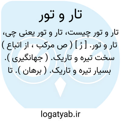 تار و تور. [ رُ ] ( ص مرکب، از اتباع ) سخت تیره و تاریک. ( جهانگیری ). بسیار تیره و تاریک. ( برهان ). تاریک و تیره و بسیار تاریک. ( آنندراج ) ( انجمن آرا ). سخت تاریک. ( فرهنگ رشیدی ):
