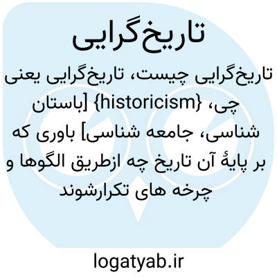 {historicism} [باستان شناسی، جامعه شناسی] باوری که بر پایۀ آن تاریخ چه ازطریق الگوها و چرخه های تکرارشونده و شناخت ضرباهنگ ها و چه ازطریق روندهای تطوری به تنهایی قادر به روشن ساختن و توضیح دادن حقایق انسانی است