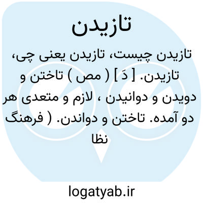 ( تازید تازد خواهد تازید بتاز تازنده تازان تازیده تازش ) ۱- ( مصدر ) تاختن دویدن. ۲- حمله کردن هجوم کردن. ۳- زادن. ۴- پیدا شدن. ۵- گرو بستن. ۶- ( مصدر ) دوانیدن بتاخت آوردن ( اسب و غیره ). ۷- آتش افروختن مشتعل کردن. ۸- سوراخ کردن.