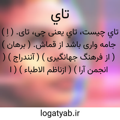 تای. ( اِ ) جامه واری باشد از قماش. ( برهان ) ( از فرهنگ جهانگیری ) ( آنندراج ) ( انجمن آرا ) ( ازناظم الاطباء ) ( از فرهنگ اوبهی ). رجوع به غیاث اللغات و لسان العجم شعوری ج 1 ورق 296 ب شود: