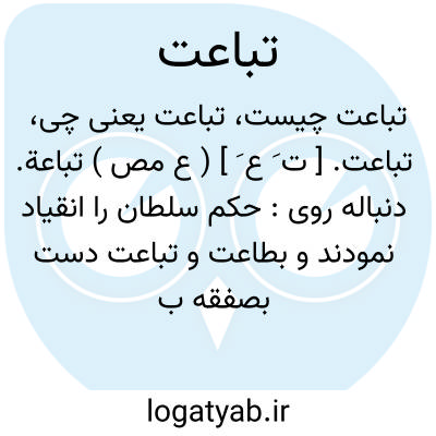 تباعت. [ ت َ ع َ ] ( ع مص ) تباعة. دنباله روی: حکم سلطان را انقیاد نمودند و بطاعت و تباعت دست بصفقه بیعت یازیدند. ( ترجمه تاریخ یمینی چ 1 تهران ص 339 ). بشرایط تباعت و استمرار بر قضیت عبودیت... قیام کردند. ( ترجمه تاریخ یمینی ایضاً ص 440 ). رجوع به تباعة شود.